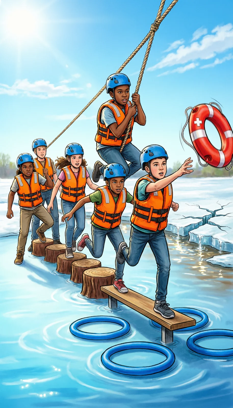 Сюжет игры превращает участников в элитный отряд МЧС. Проходя через «Зыбкое болото», «Трескучий лёд» и «Ледяные заторы», дети на практике отрабатывают алгоритмы спасения, развивают координацию и командный дух. Игровой формат гарантирует, что правила безопасности (например, почему нельзя выходить на лед или стоять у обрыва) будут не просто услышаны, а прожиты и усвоены на уровне автоматизма.