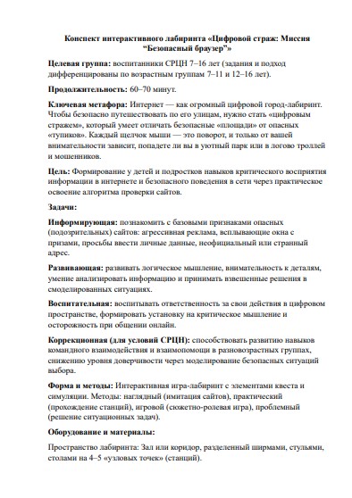Конспект игры «Цифровой страж»: сценарий квеста по кибербезопасности для СРЦН и школ (7–16 лет)