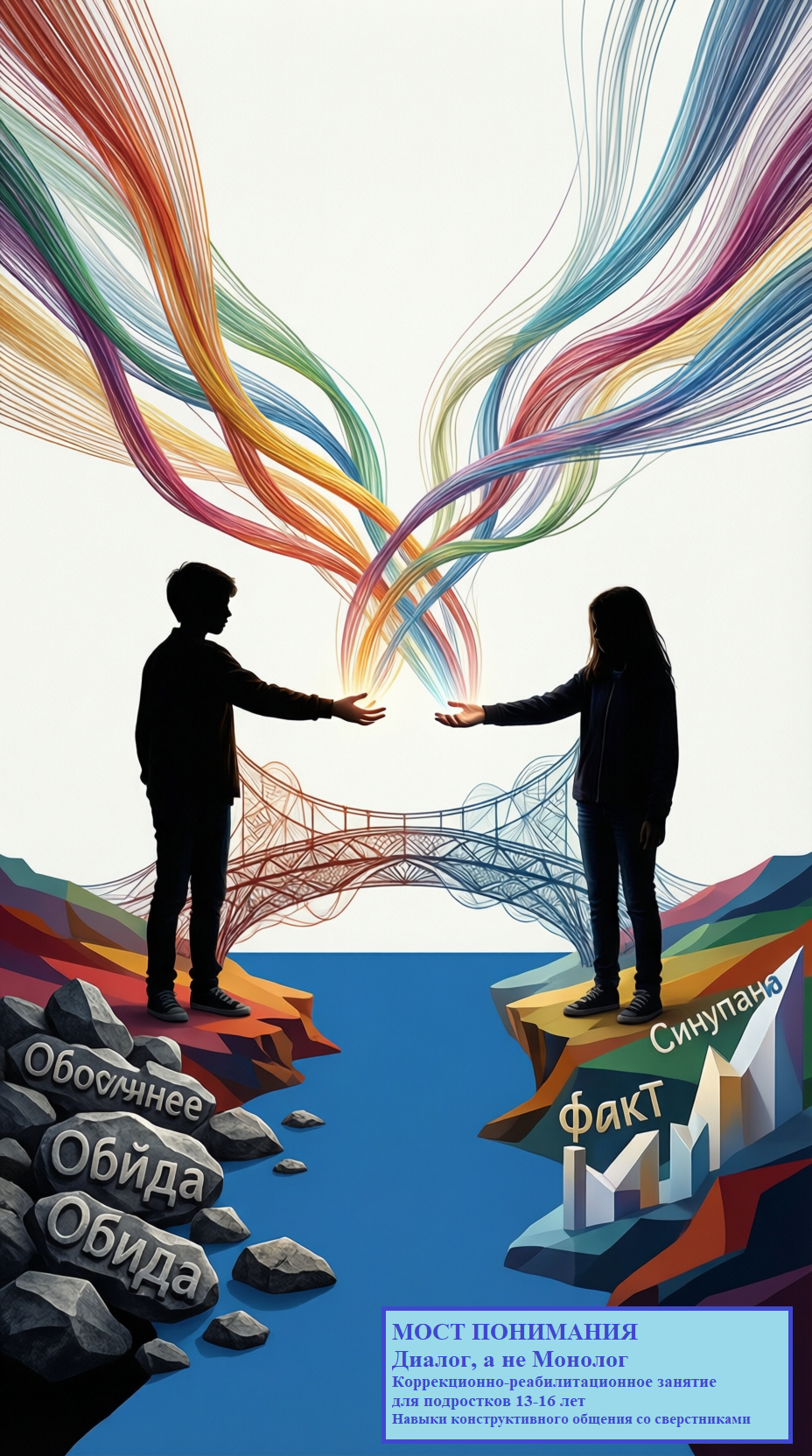 «Мост Понимания» — это не нотации, а практический тренинг, где подростки 13–16 лет учатся конструктивному взаимодействию через осознание своих эмоций и способов коммуникации.