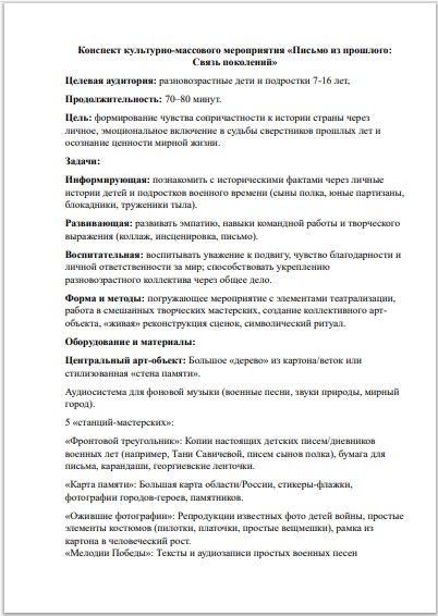 Конспект культурно-массового мероприятия «Письмо из прошлого»: сценарий ко Дню Победы 9 мая (7-16 лет)