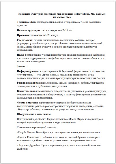 Конспект мероприятия «Мост Мира»: сценарий ко Дню солидарности / Дню народного единства (7-16 лет)