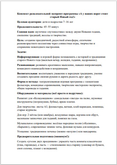 Конспект программы «Старый Новый год»: сценарий праздничного мероприятия для детей 7–16 лет (СРЦН/лагерь)