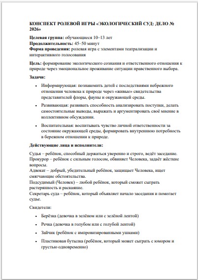 Конспект ролевой игры «Экологический суд: Дело № 2026» ФГОС, 10–13 лет