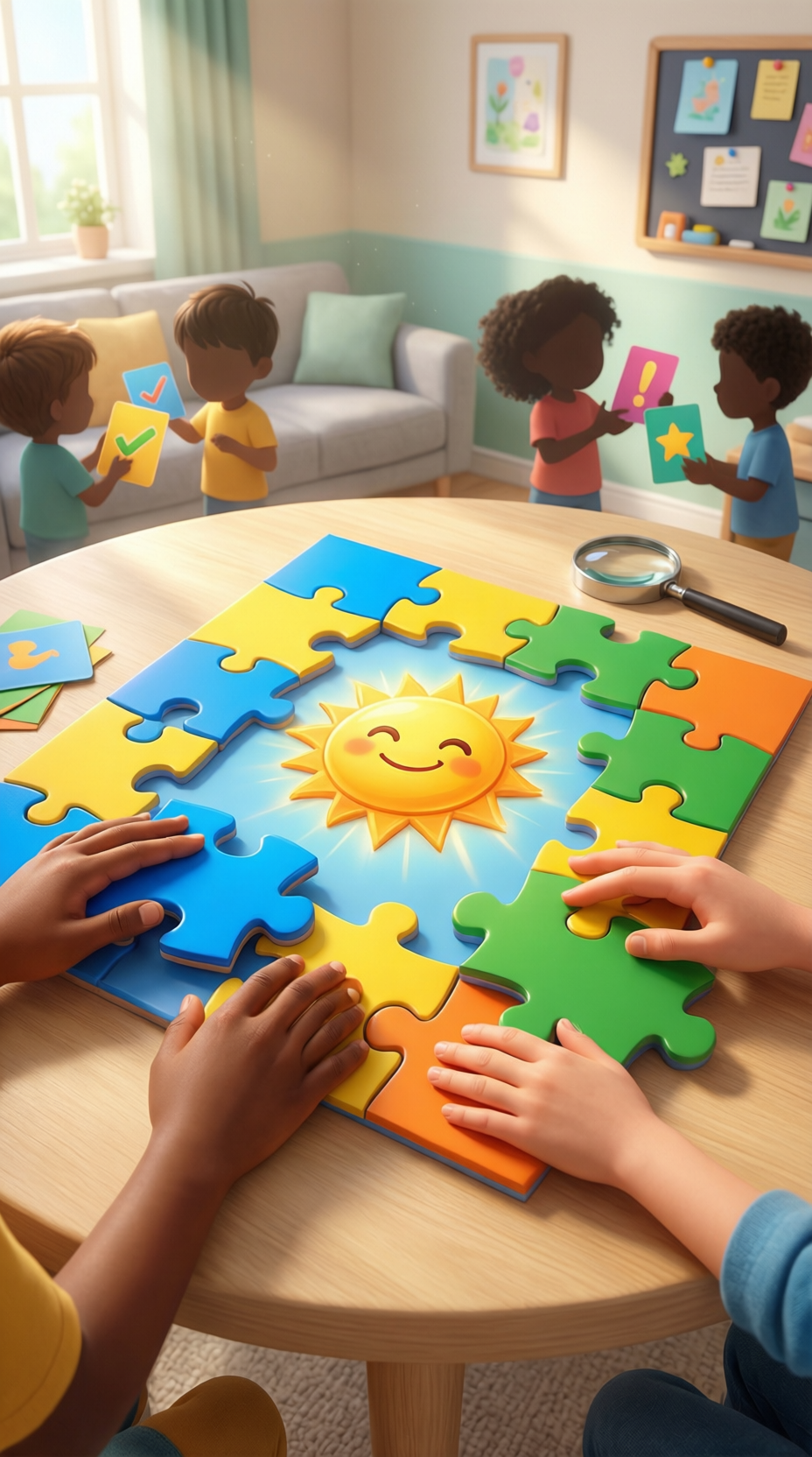 - Минимум подготовки: Все необходимые материалы просты и наглядны: значки из бумаги, карточки-улики, плакаты (шаблоны прилагаются).
